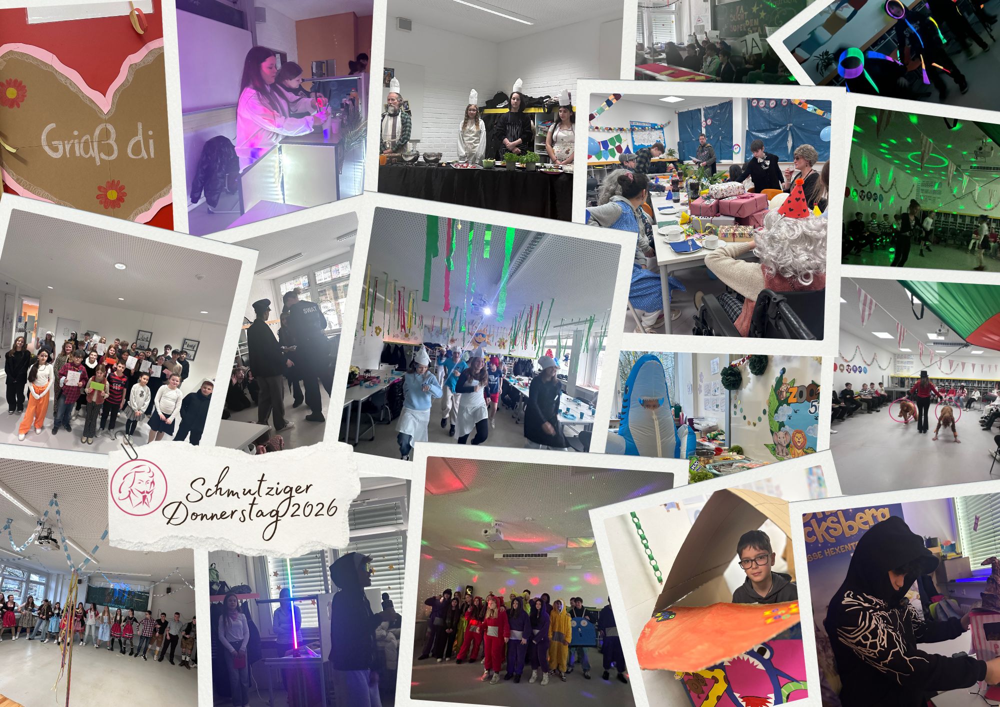 Jede Lerngruppe wählte ein eigenes Motto und legte sich mächtig ins Zeug: Von „Zoo“ über „100. Geburtstag“ bis hin zu „Zirkus“, „Kino“, „Schlümpfe“, „Casino“ und „Oktoberfest“ und vieles mehr war vertreten. Die Schüler*innen kamen passend kostümiert, verwandelten ihre Lernräume in thematische Erlebniswelten und bereiteten sogar Performances zu ihren Themen vor.