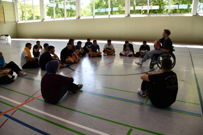 Geleitet wurde die Einheit von einem Referenten, der seit seiner Kindheit im Rollstuhl sitzt und heute erfolgreich in der 1. Bundesliga in München aktiv ist. Durch verschiedene Übungen im Rollstuhl erfuhren die Jugendlichen, wie man sich auch im Rollstuhl sportlich aktiv bewegen kann und welche besonderen Anforderungen diese Sportart mit sich bringt.