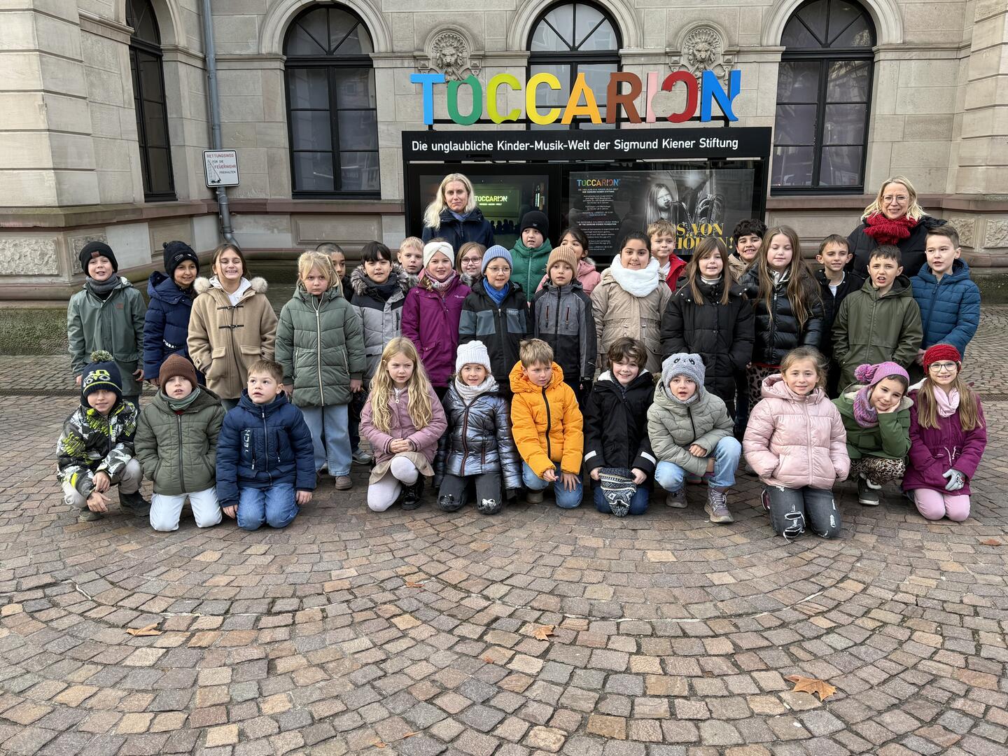 Die Klassen 2a und 2d der Grundschule Willstätt besuchten am 4. Dezember 2025 das Toccarion – Die unglaubliche Kinder-Musik-Welt der Siegmund Kiener Stiftung im Festspielhaus Baden-Baden und gingen der Frage nach, was sich hinter diesem geheimnisvollen Namen verbirgt. Voller Neugier und Freude tauchten die Kinder in eine bunte Klangwelt ein.