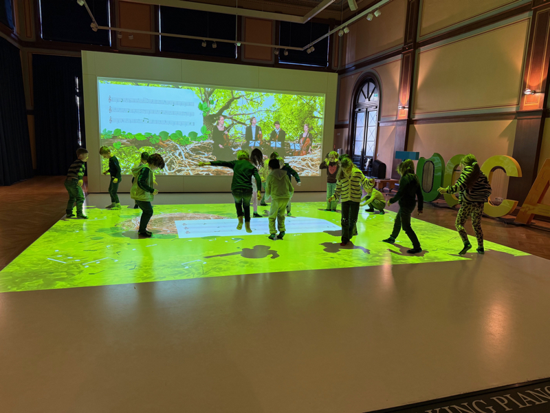 Jede Menge Spaß bereitete zudem ein großes Fußbodenklavier, auf welchem eigene Melodien gespielt werden konnten, sowie ein Tanzraum, in dem die Schüler und Schülerinnen animierten Takten über den Boden folgten. Überall zeigte sich: Musik entdecken macht riesigen Spaß.
