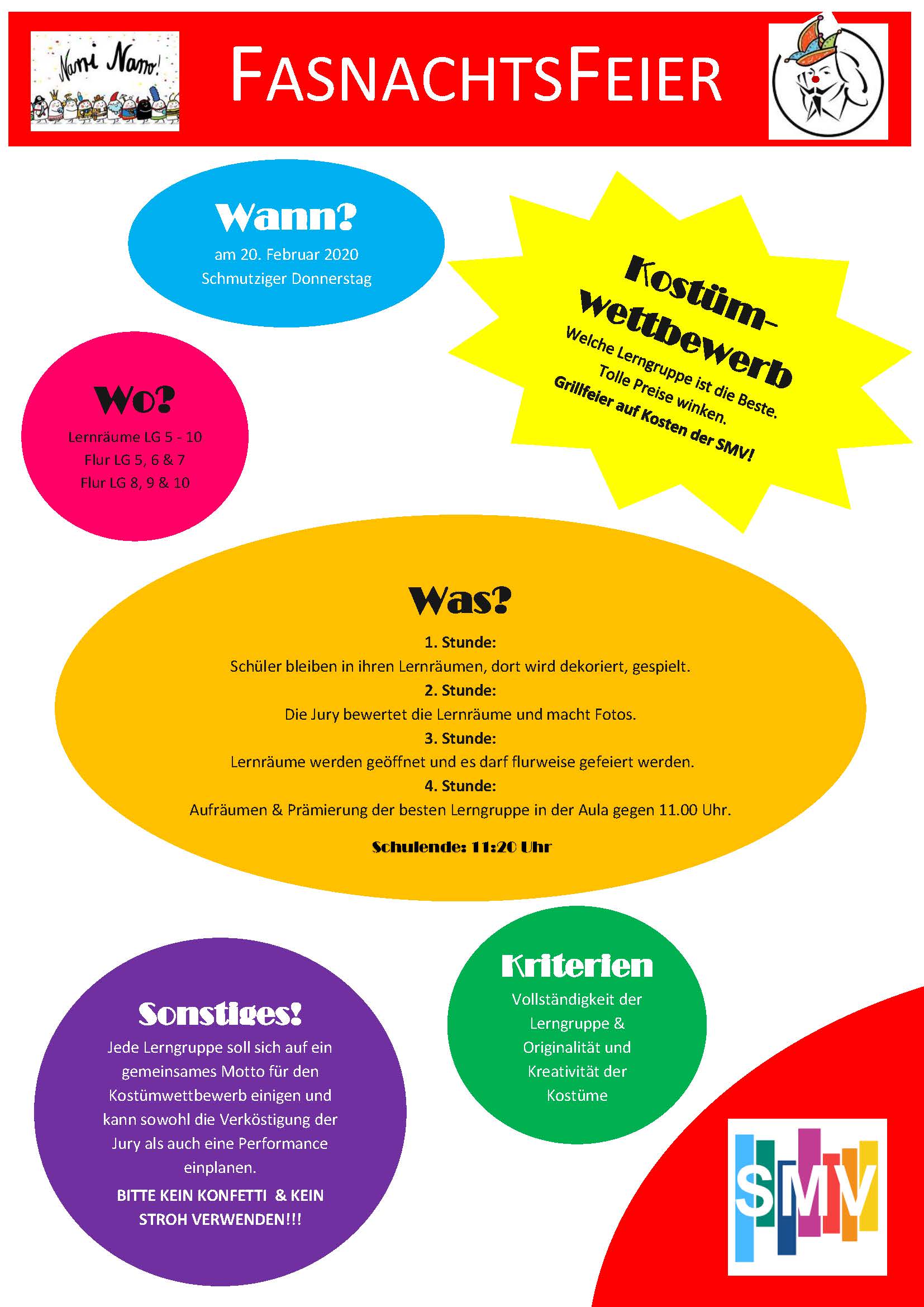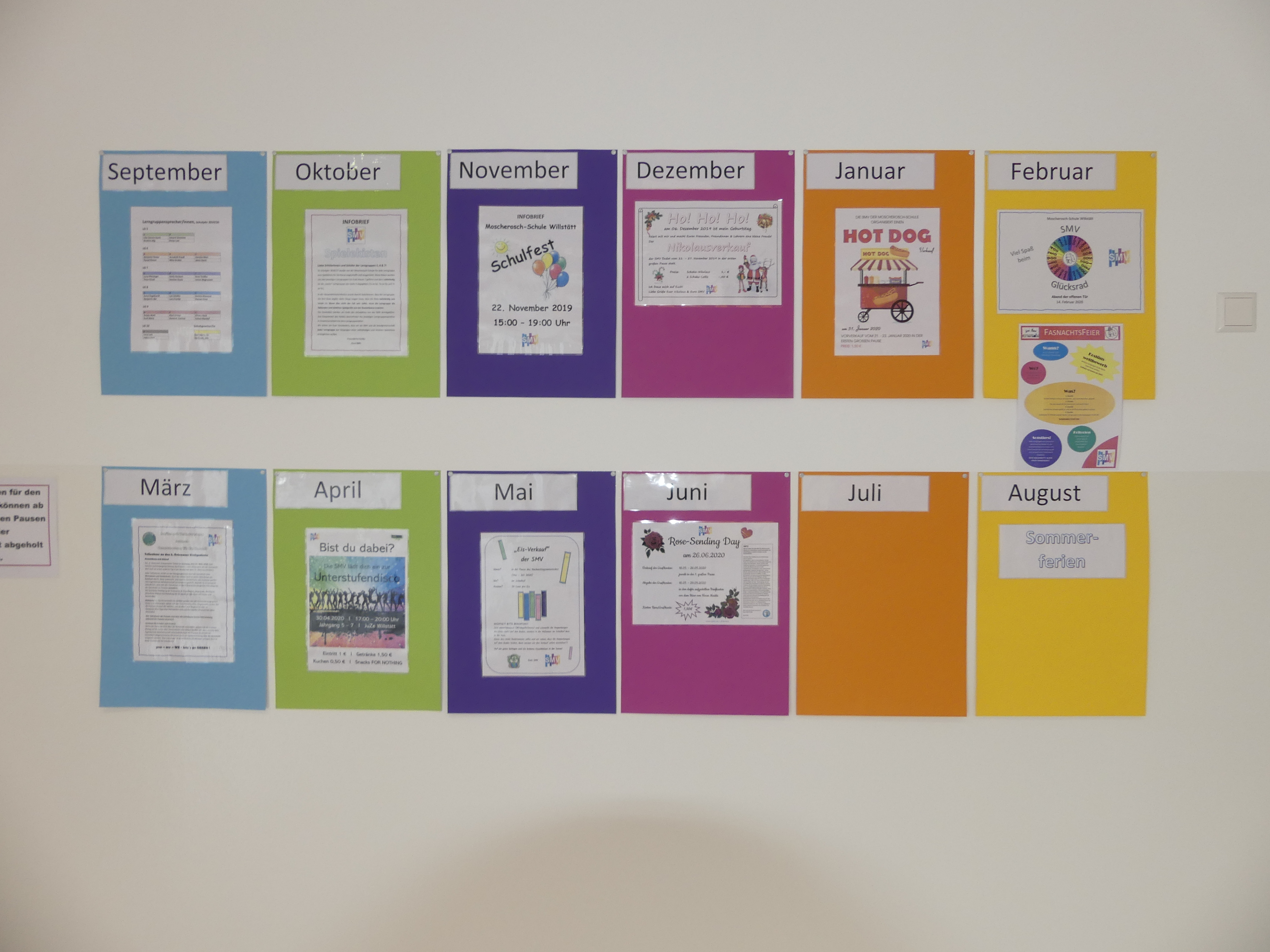 damit ihr jederzeit über alles informiert seid, gibt es nun eine große SMV-Pinnwand, an der ihre einen Überblick über alle SMV-Aktionen bekommt. Die Pinnwand befindet sich am zweiten Eingang zur “Schüler-Lagune“!