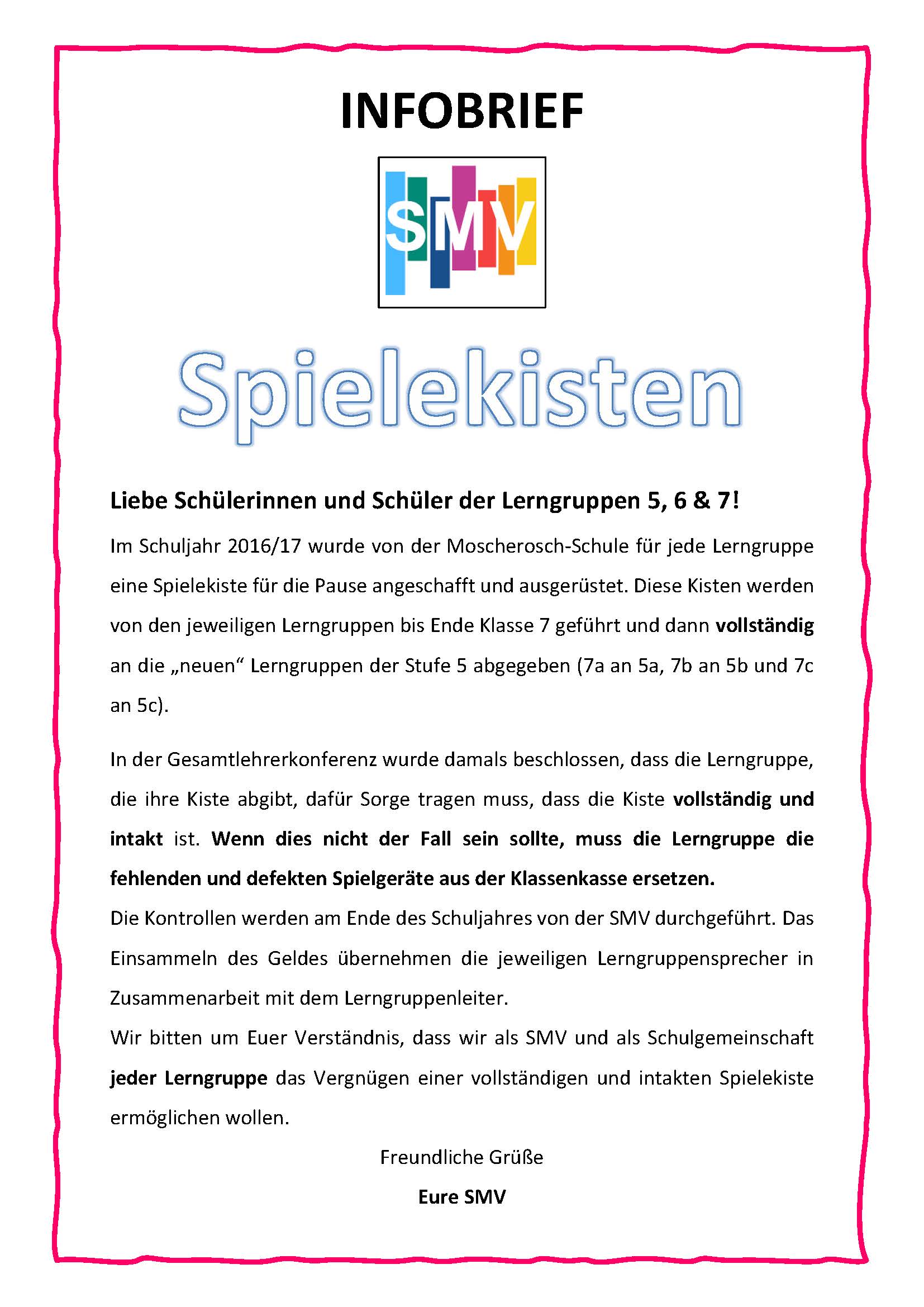 damit ihr jederzeit über alles informiert seid, gibt es nun eine große SMV-Pinnwand, an der ihre einen Überblick über alle SMV-Aktionen bekommt. Die Pinnwand befindet sich am zweiten Eingang zur “Schüler-Lagune“!