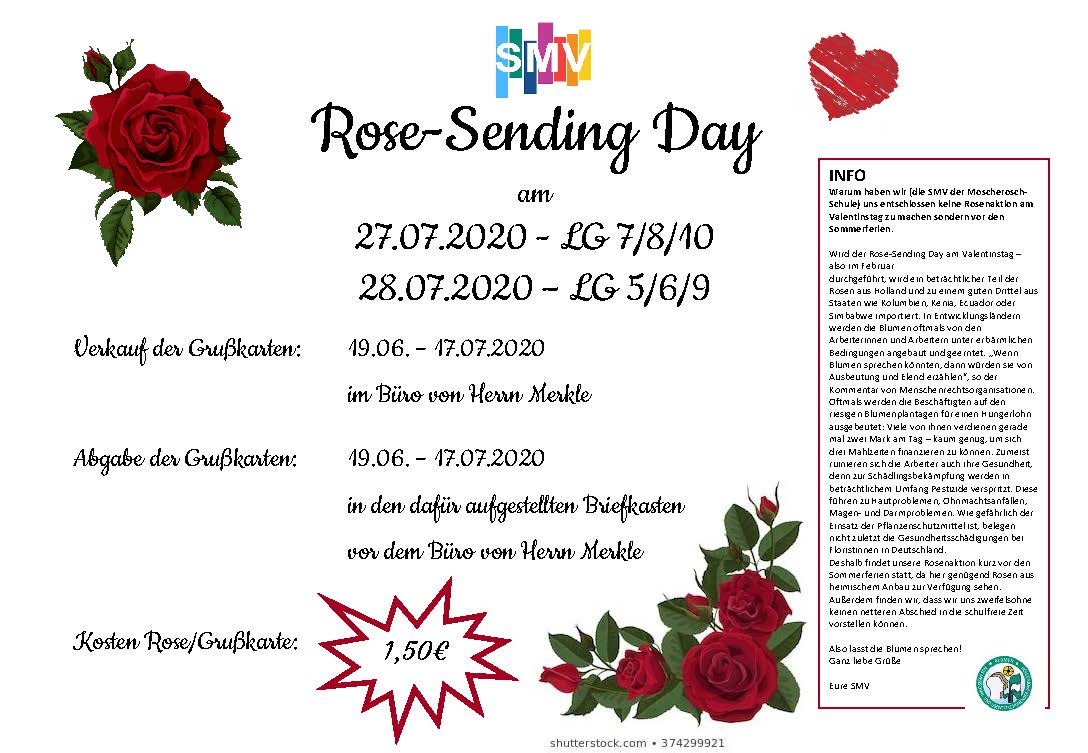 Der Rosentag ist eine SMV-Aktion für die gesamte Schule, also gleichermaßen für Schülerinnen und Schüler, Lehrerinnen und Lehrer und die Schulleitung.